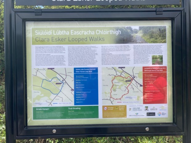 This trail had been developed recently, about 2018, by Offaly council in response to the Get Ireland Walking Stategy supported by Healthy Ireland and judging by the number of cars at the trailhead ,Mulligans car park , was popular. The map board there displayed a number of different options and info.