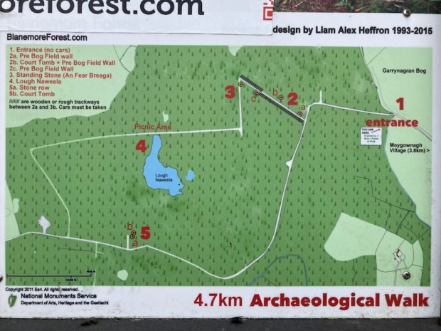 Across the bog a few km, near the proposed site of phase 3, is Blanemore Forest and its 4.7 km loop. A spruce, pine and larch plantation was thoughtlessly put down on top of a wealth of Neolithic and Bronze Age monuments.