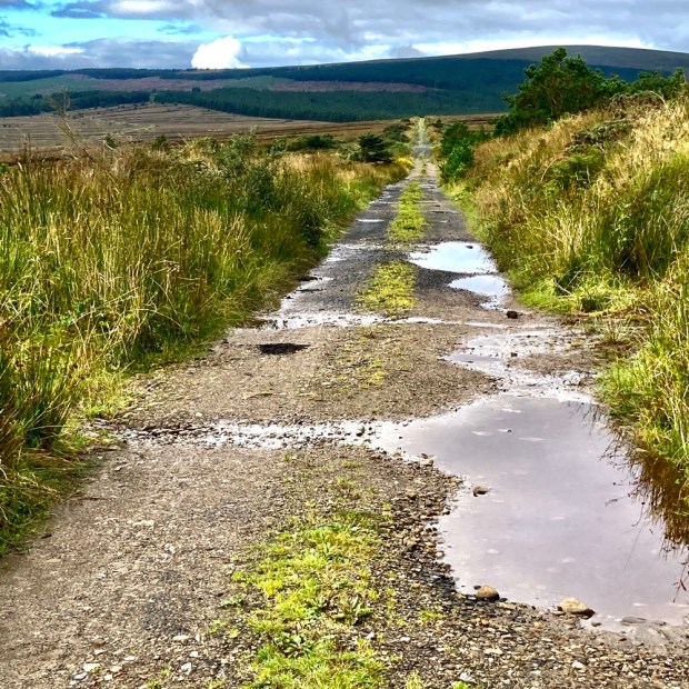 Sunday morning we walked down through town to the trail head of the Sralagagh 9.5km Loop and headed off a small road that became a boreen that became a track. Abandoned gravel pits, rough overgrown fields, some mattress dumping and views of farms smothered by forestry monoculture doesn’t sound great but our surroundings had a melancholy charm enhanced by the frequent gurgling of multiple watercourses.
