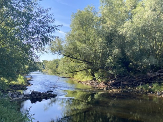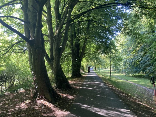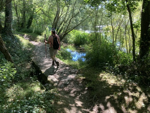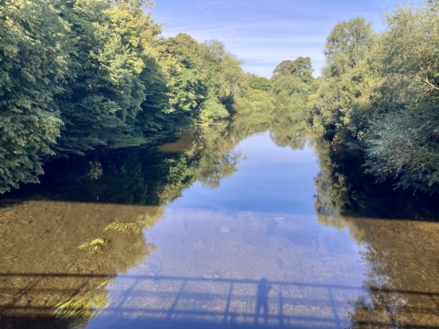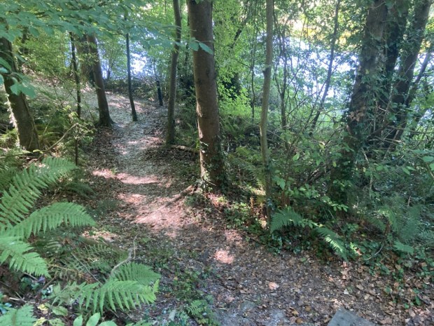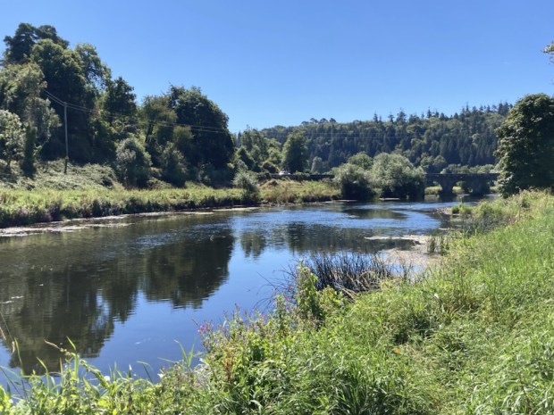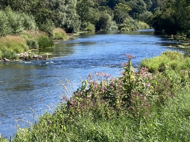 The river was wide, shallow and clear. The long spell without rain had lowered the level considerably and Irish waterways had asked the public to report any signs of overheated and distressed fish. We were kept cool on the shaded path through the trees, refreshed by the gurgling and twinkling of water over shallows.