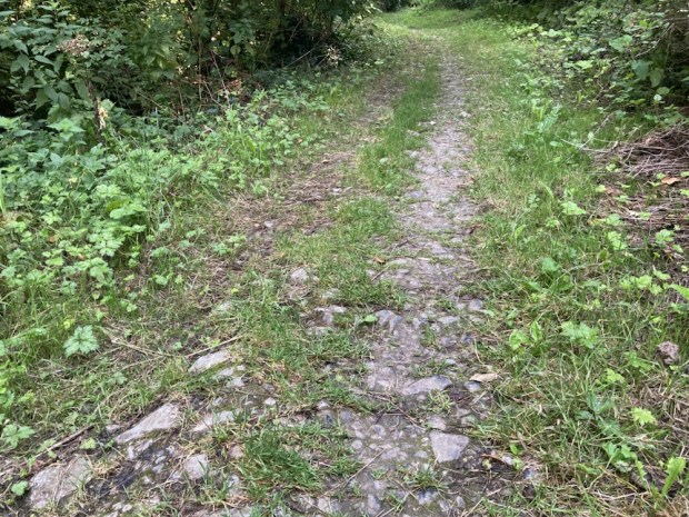 The 500 acres of rolling parkland that the house overlooks from its high ridge include a golf course (of course) , formal gardens, mature oak woodland, man made lakes, the Nore valley and acres of fenced horse paddocks. Riding, fly fishing, archery, falconry – and golf- all go on in this pocket of privilege. We wondered if the delay in completing the Way was due to obstruction by the estate.