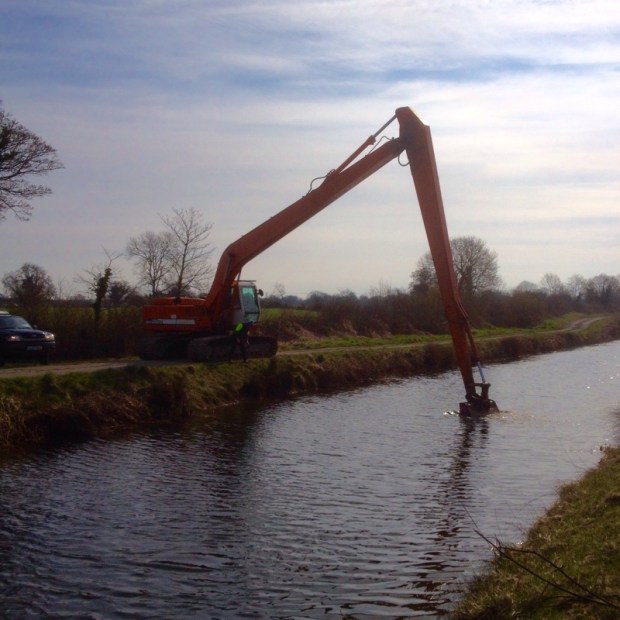 There is currently a lot of work being done on the towpaths creating the walk/ cycle way and dredging and clearing the canal itself. We came upon one of the diggers with a massive arms for scrapping the opposite bank.