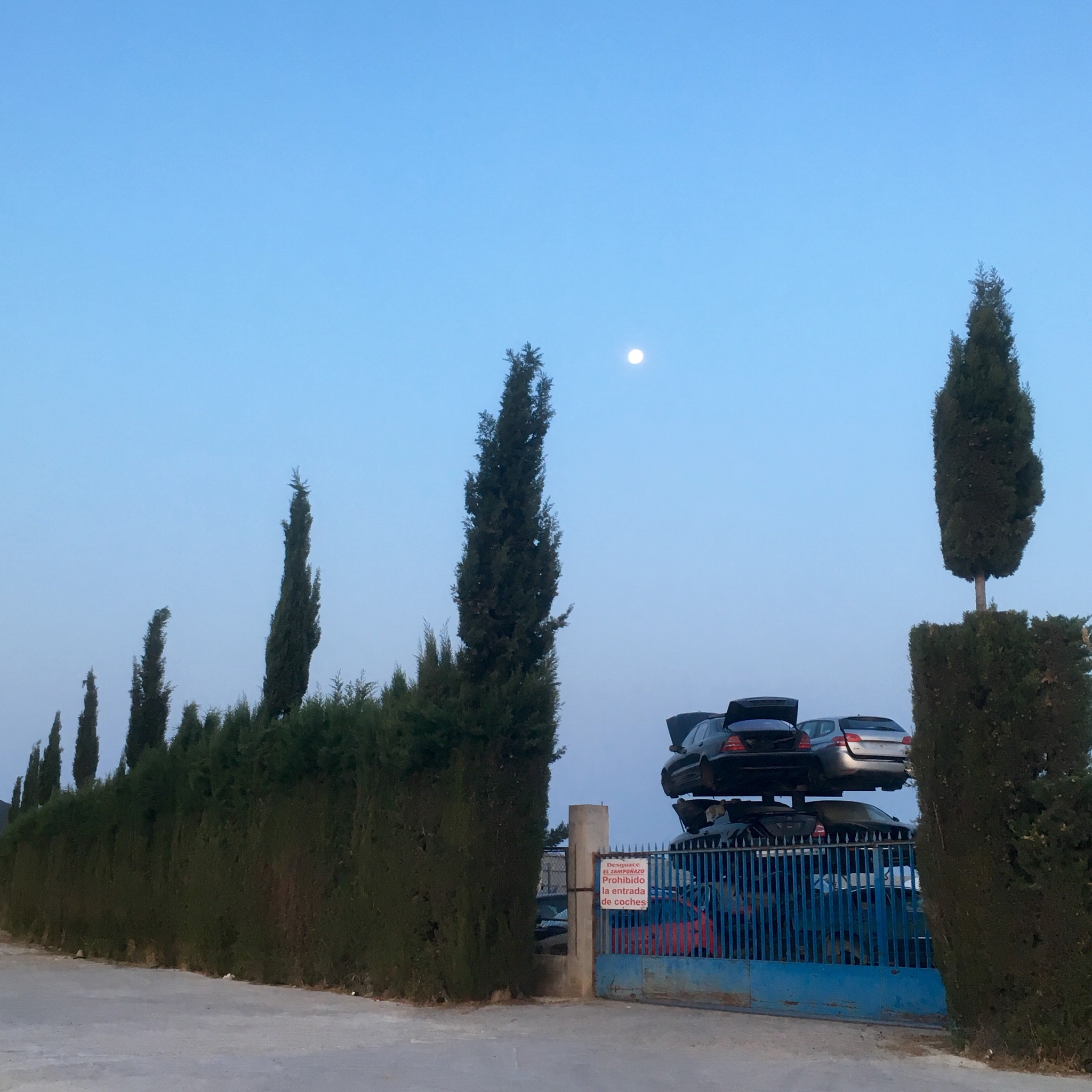 Walking out at dawn I realised I’d been on the very edge of town and skirted around it through an industrial area. I was taken by the artistry of the car breakers.