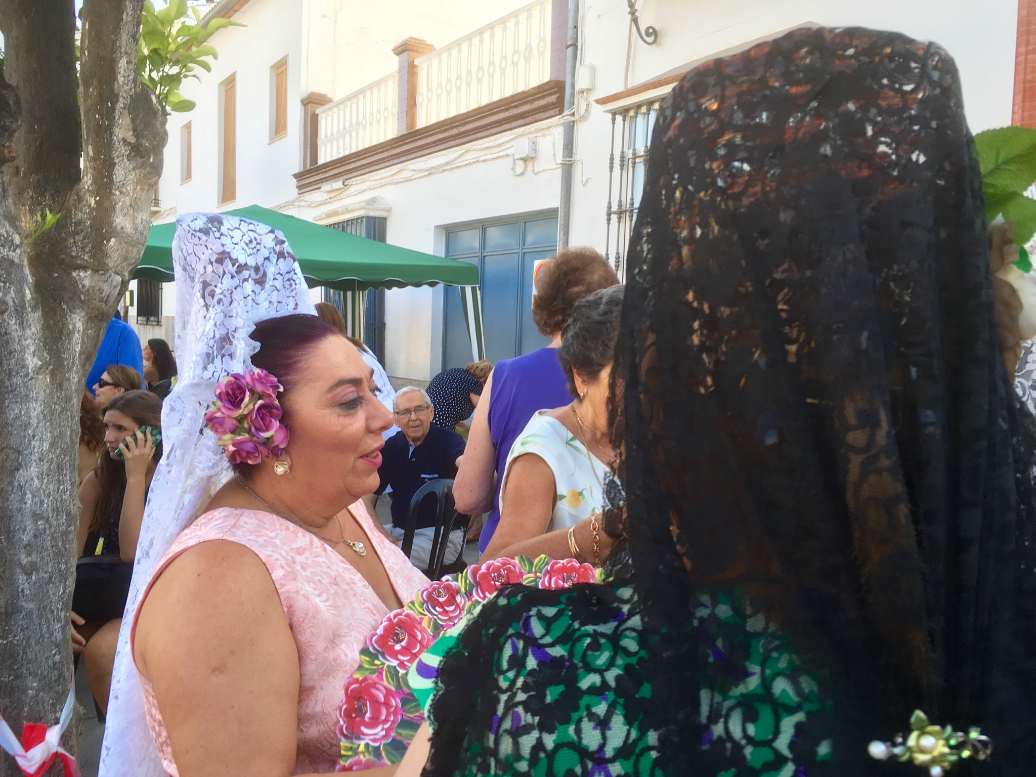 The weary walker couldn’t stay up for the late night procession of the Virgin through town, but I got a sneak preview in the cathedral of her flower bedecked podium(?)