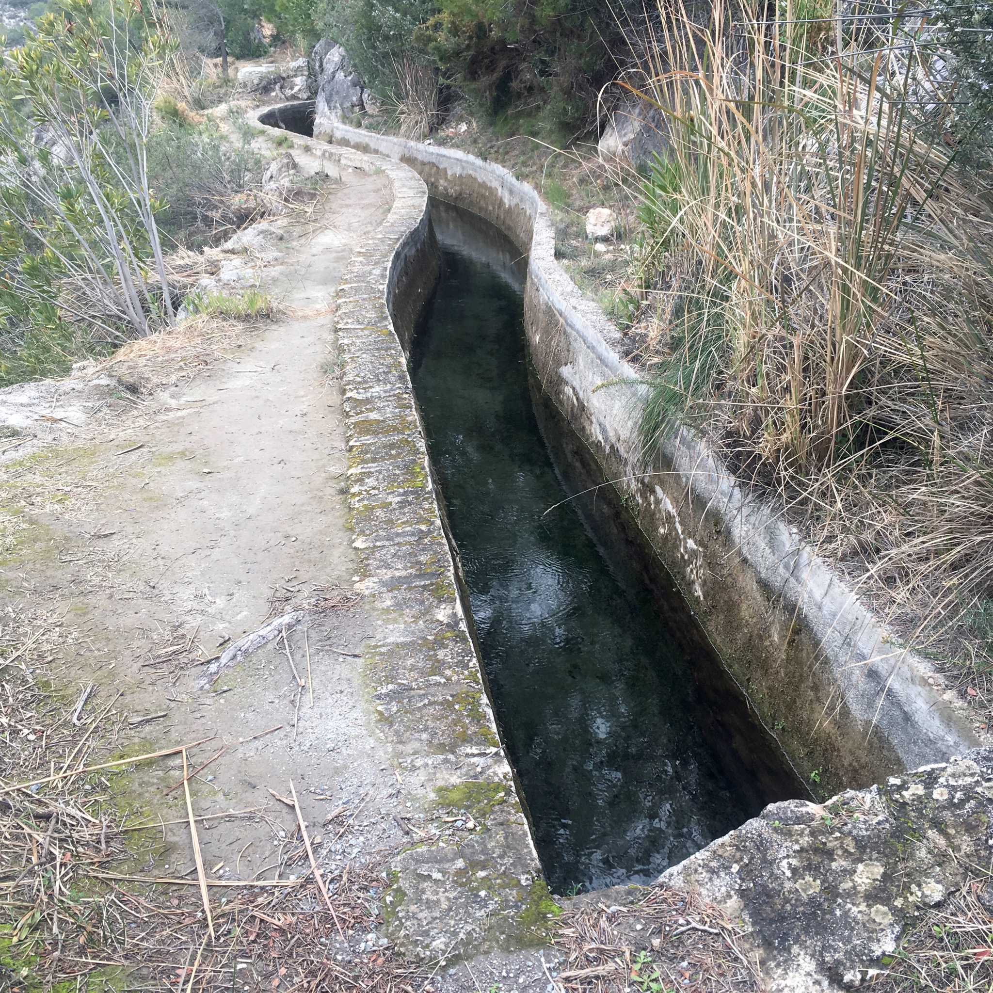 passing the impressive canal del chillar which cuts a gash for 6km across the mountain carrying the lifeblood of the crops on the Costa and energy for electricity production.