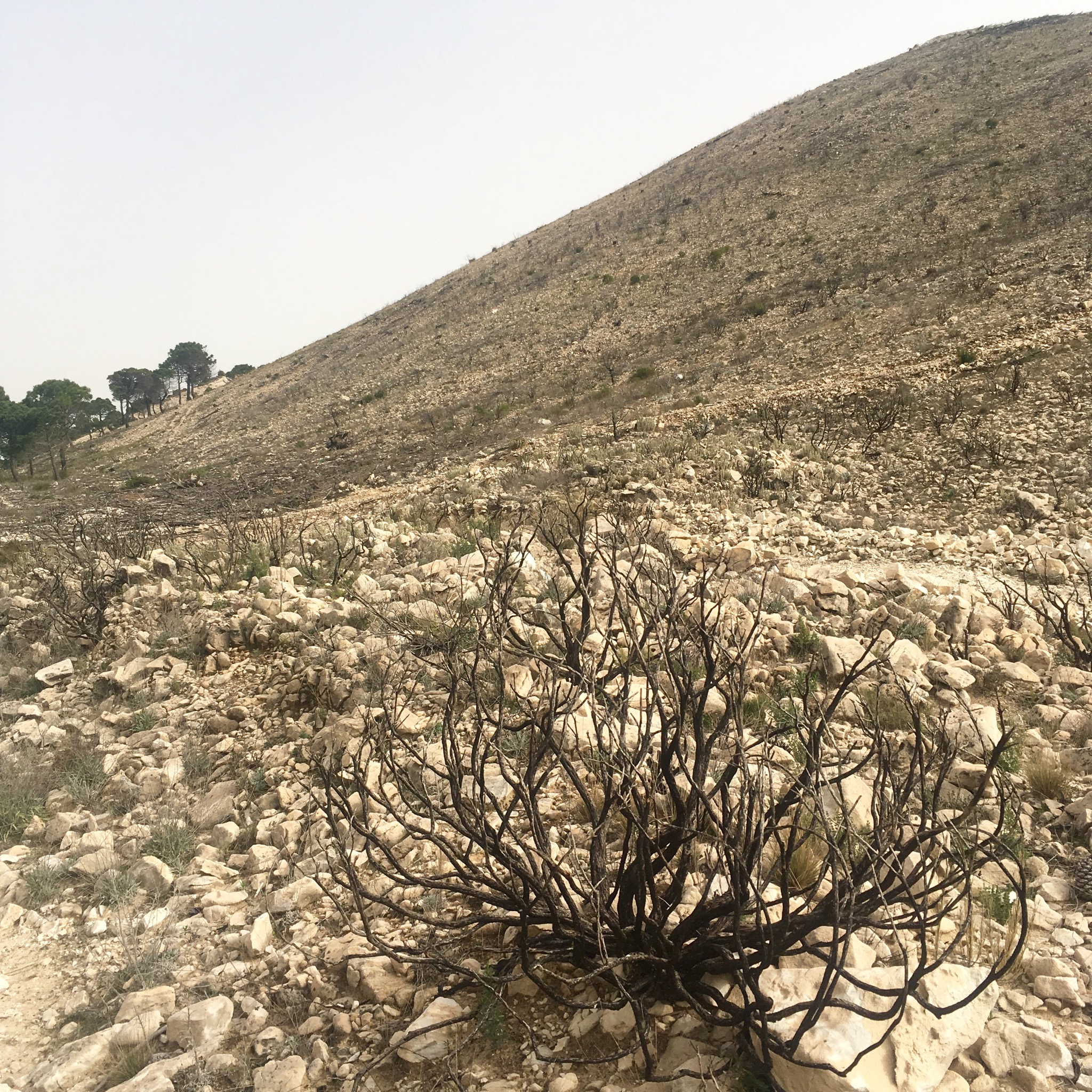 Passing beneath a fire lookout station I was soon confronted with the importance of their work. A huge area of burnt and denuded hillside