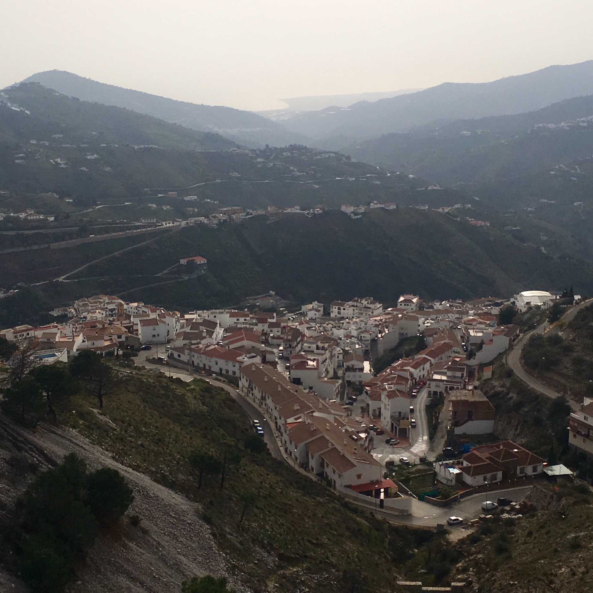 The first, from the Nerja caves near sea level involved an ascent 765m over 15km and back down to 300m at Frigiliana. The second day was the toughest and last of the trip, climbing to nearly 1200m before dropping to 685m at Competa 27km later.
