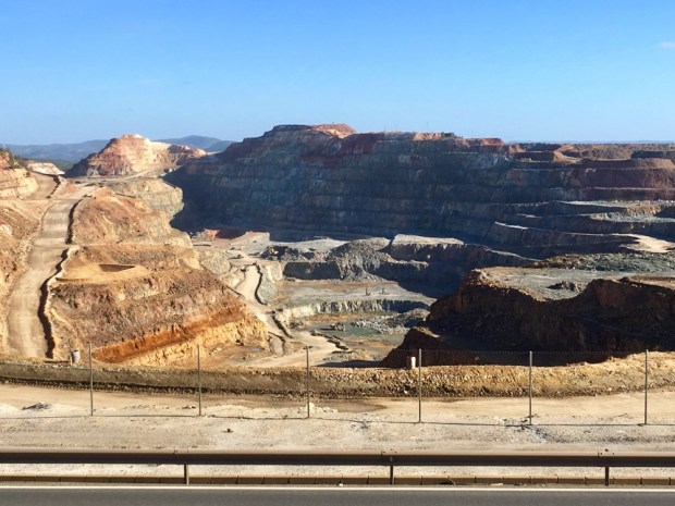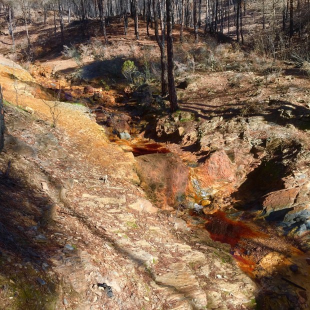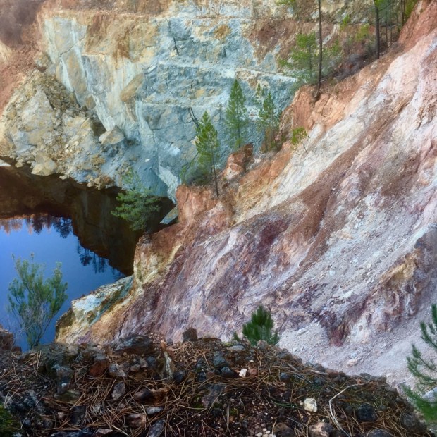 The largest open cast mine in Europe is here, recently flooded and left. But it’s been going on for 5000 years with the Iberian miners leaving many Neolithic reminders of their presence around the area. Then Phoenicians mined copper and mixed it with tin from Cornwall to make bronze. The Romans followed after but preferred the gold and silver in the rocks, as well as copper, lead, iron and sulfur.