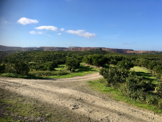 Turns out it’s all RioTinto fruit. Europe’s largest citrus farm at 3000 hectares. They are big into the use of Boron in agriculture. Boron is one of the common minerals in the spoilheap landscape. There’s also lots of unpleasant ones.