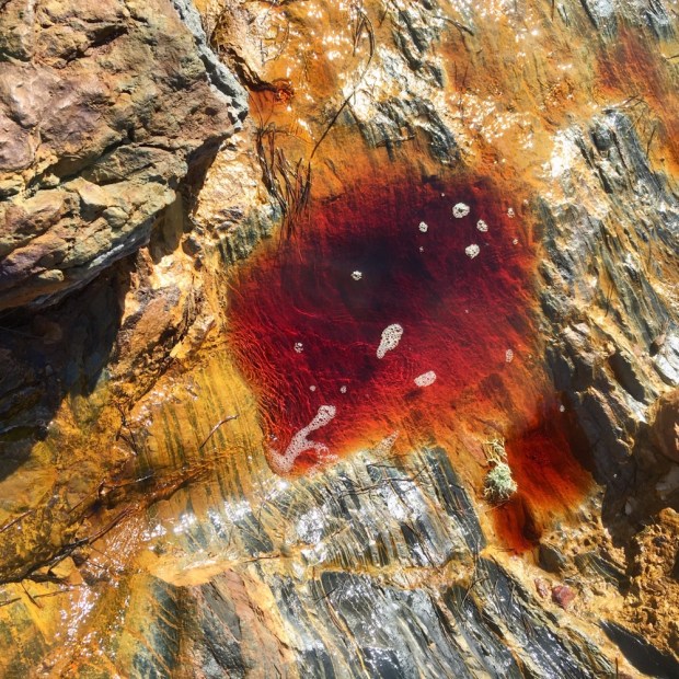 All very weird, and it got weirder when we drove down to Riotinto town and stopped at the source of its namesake. The river waters are full of copper and iron oxide and sulfuric acid and other lovely things, something I didn’t know when I tasted it!