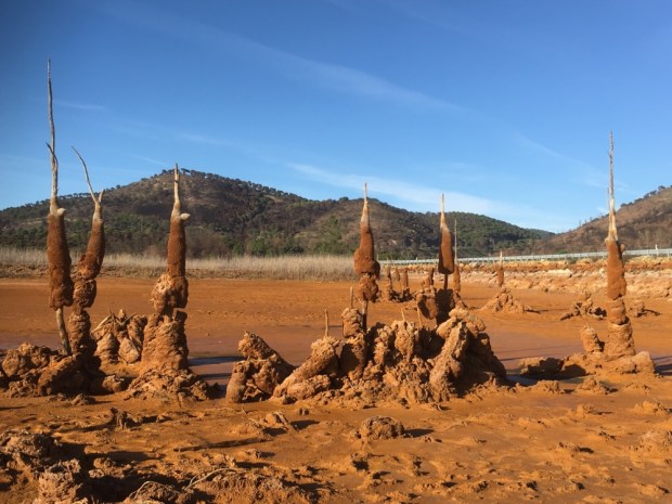 Anyone wanting to make an ” end of the earth” sci fi/ horror movie could do worse than come here and our next location was perfect. A few Km north of town on the way to Aracena lay the Embalse Gossan and here the out of this world cranked up a notch.