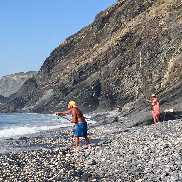 The river had, in the 15 th century been navigable all the way from the sea to Aljezur, giving the only spacious safe harbourage for miles of west coast. The town lies on the fertile plain and is famous for its sweet potatoes. With a couple of hours before we could check in the our hostel we visited the market where our first adventure on the Fisherman’s Trail started 4 years ago and then strolled to the riverside to relax and watch the crayfish.