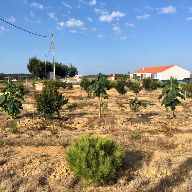 We passed some pretty sickly looking cork oaks and an alpaca farm where one of the beasts seemed to have escaped the fencing. The way crossed and followed a road a little way before again turning off on a dirt track that afforded fine views of the river valley from the coast towards Aljezur.