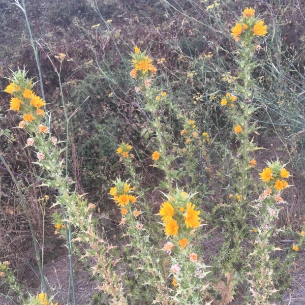 The final downhill inflicted on Sally’s knees took us past a strange hamlet of restored or built holiday houses which although fairly new looking were worse for west and unused. The path took us through the complex along a little lush valley complete with ancient moorish well and up the final uphill to be inflicted on my lungs. And then we were there, at the church, with not enough puff or desire to climb the extra distance to the hilltop castle.