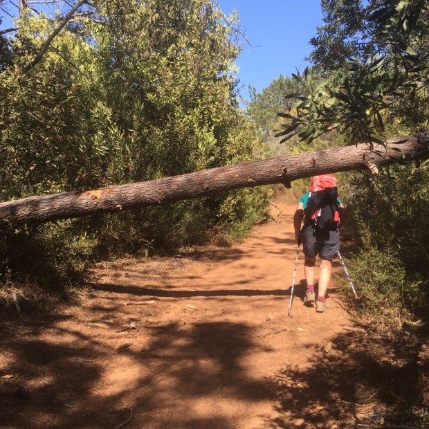 Leaving the luxury of our stay in the middle of the long 22 km stage between Carrapateira and Arrifana we only had about 10 km to go with one serious up and down. It was our last day with our friends and the penultimate one of the trip for us. We took off down the wide solid track which soon led us into eucalyptus plantations which afforded us welcome shade. The weather had been perfect the whole trip, with our rain jackets remaining at the bottom of our packs.
