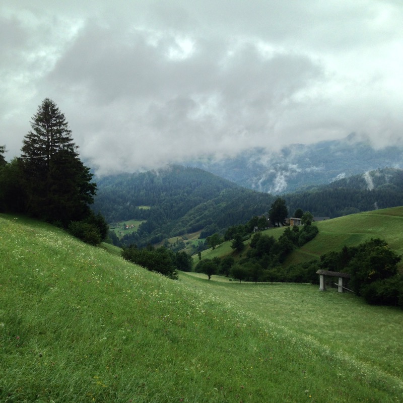 We had to get the Tranny up and over its first big climb since major boil over and it managed it fine, although at a sedate pace. The southern side of the Julian Alps revealed more miles of forest interspersed with steep sided hay meadows.