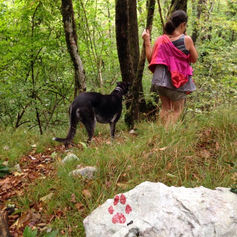 Next day we took dogs for a walk on their very own doggy trail, marked with paw prints