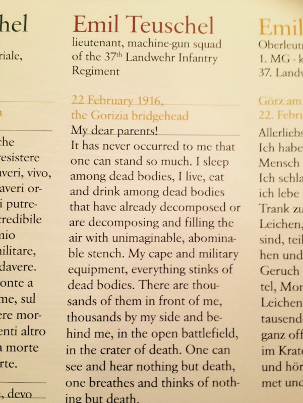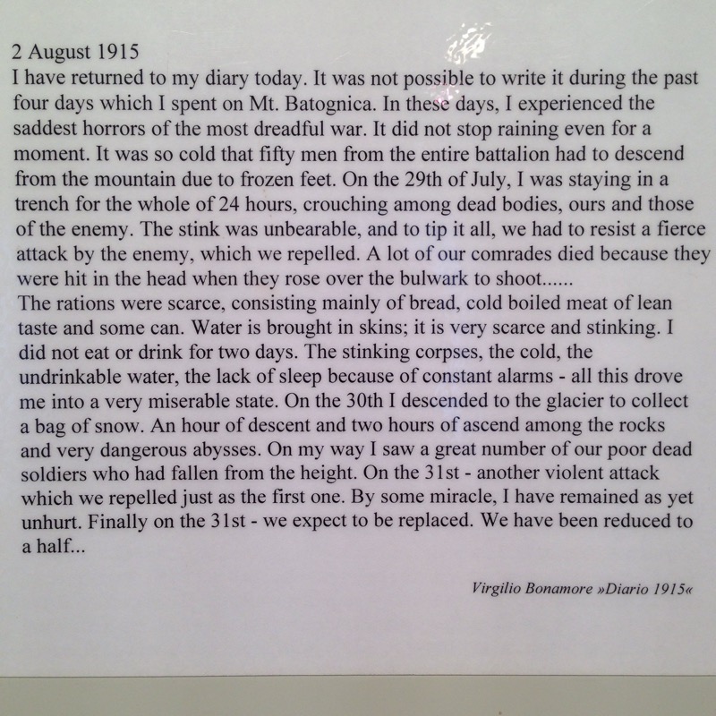 And after hiking a little in these mountains the knowledge that the poor feckers had spent two long winters at the tops in ice and snow raining hell on each other out of morters and guns they had dragged up there was a sobering reminder again of our good luck. The western front was grim but at least they didn’t have to contend with avalanche, rockfall and frostbite.