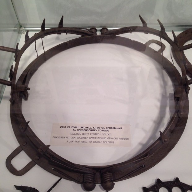 The threatened rain came and we hid in the van reading about the trails we could be hiking. The area is most well known for being at the centre of vicious and entrenched (literally) fighting between 1915 and 1917 along the Isonzo front and culminated in the Battle of Kobarid when hundreds of thousands of Austro-Hungarian, German fought Italian troops in countless miles of trenches and fortifications across, along and over the mighty mountains. The whole sorry saga is immortalised in Hemingway’s “A Farewell to Arms” and when the rain eased up we visited the award winning museum in town dedicated to telling the story. There were many moving exhibits.