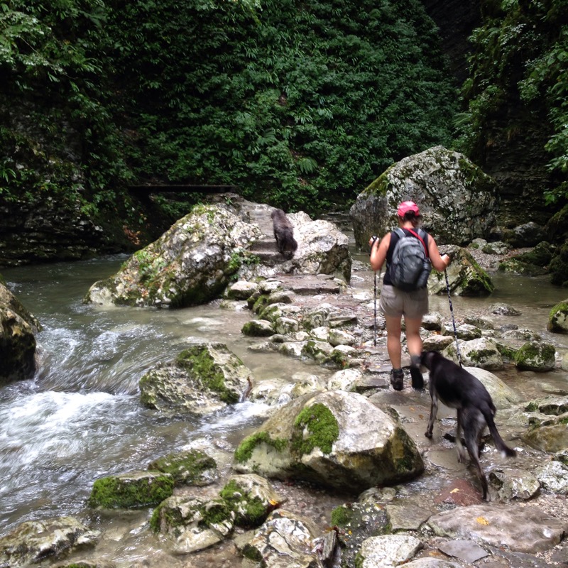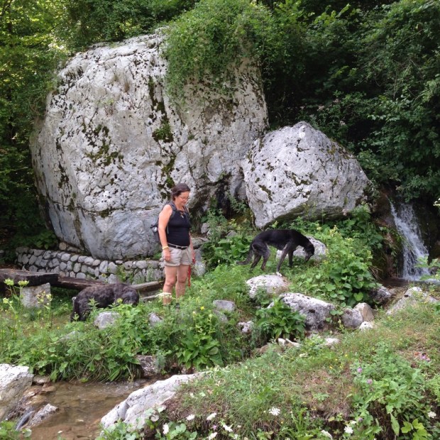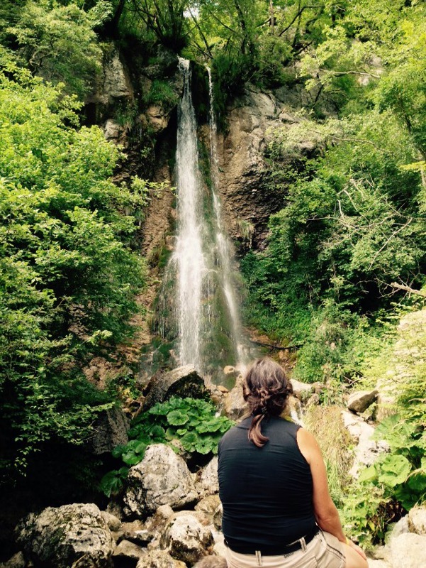 With the sun now shining strongly again it was time for more natural beauty so we drove up the switchback road into the mountains to the little village of Dreznica where we followed a trail still higher on foot to a couple of spectacular (after all the rain) waterfalls called Sopota and Krampez and I had the most powerful power showers of my life under both of them (Sally has the evidence).