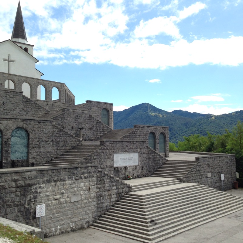 At the bottom of the hill was another church, this one from the 17th century, that had an Italian Charnel House built around it. Opened by Mussolini in 1938, as this was the victorious Italians territory between the wars, it contained the remains of over 7,000 Italian soldiers killed in the Isonzo Front.
