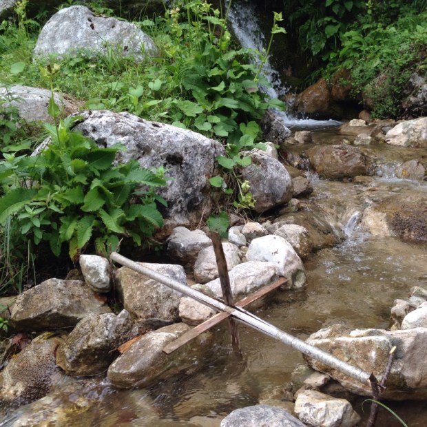 The walk continued passed more water features of delight. I’ve seen a few of these really simple little water wheels in streams and springs.