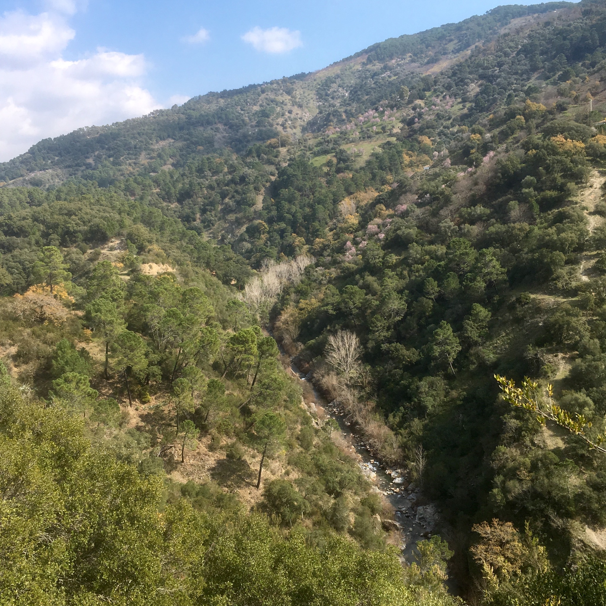 The next leg was a longer but easier 20km trek on mostly good tracks to Monda, over the Canada del Infierno and the high point of Puerto de Moratan at 600m.