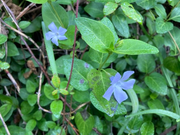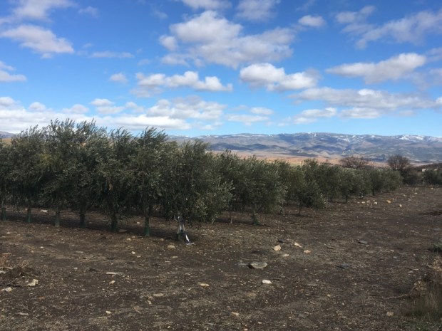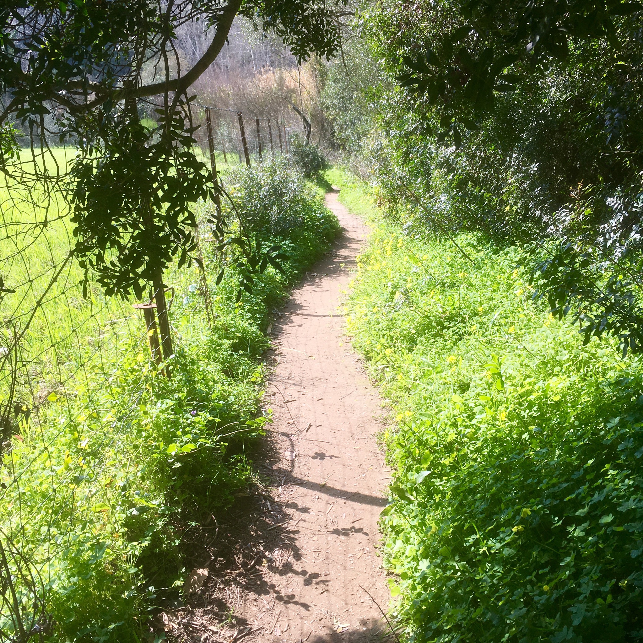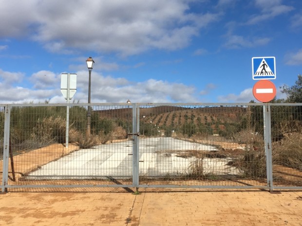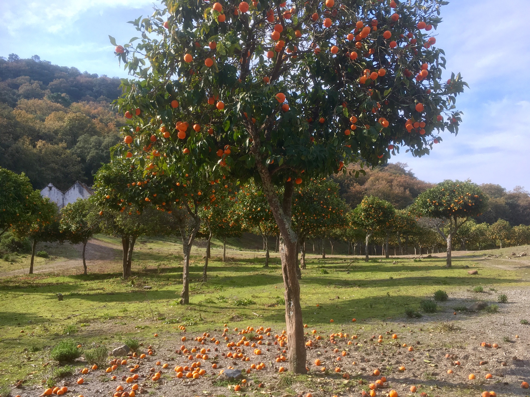 From the Puerto it was a long descent alongside a massive fenced and gated estate of forest, orchard and arable strips between rosemary covered scrubland.