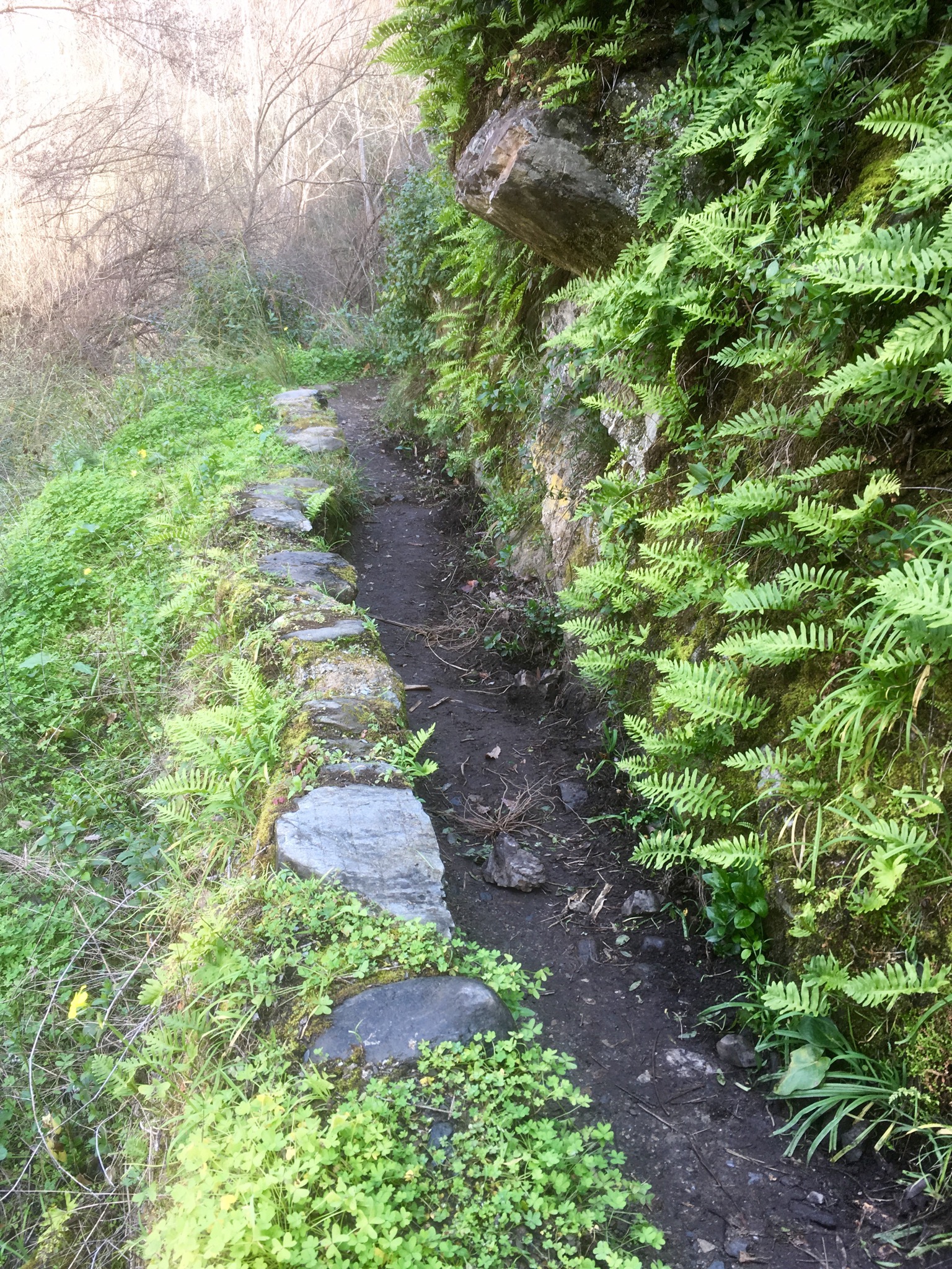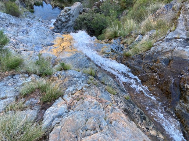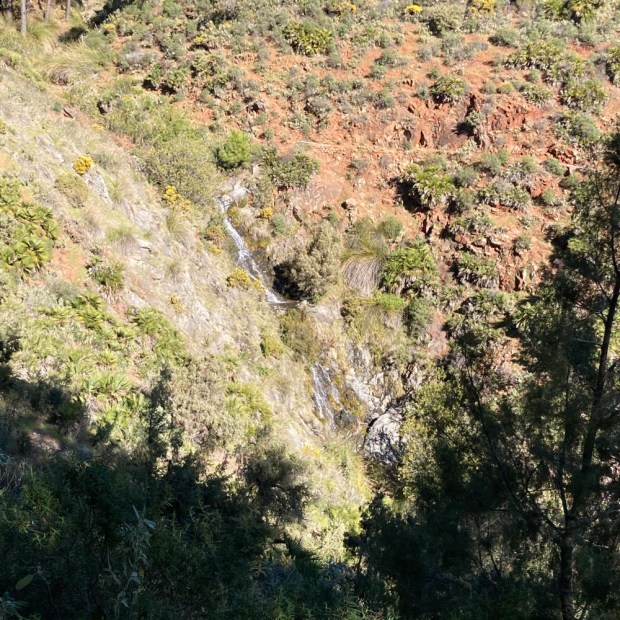 Starting off from the Puerto del Monte we climbed a zig zag track way marked with yellow and white dashes up through the red peridotite rocks this area is renown for. The lower altitudes of the Sierra are made up of the worlds largest massif of this rare rockform. The impervious nature of the rock holds the water that nurtures the lush vegetation and creates the dramatic cascades.