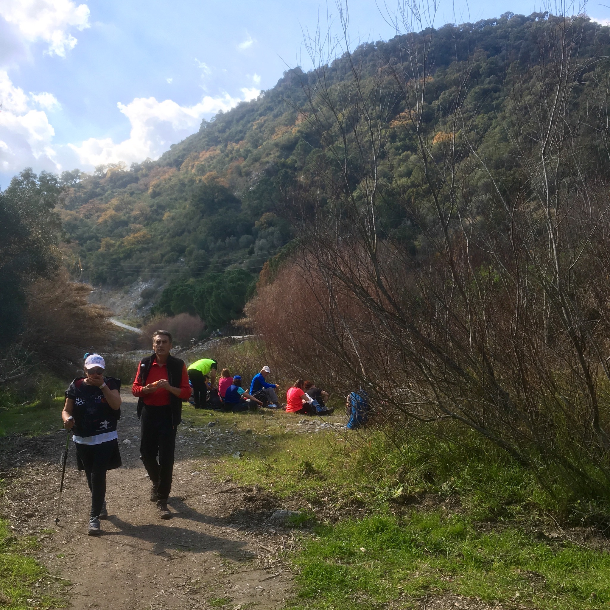 Next day we set off to drive up to the Mirador Puerto Saucillo above Yunquera to do a hike up to Penon Enamorados ( Lovers Crag/Rock) the second highest peak in the Sierra at 1760m. Unfortunately the road up had been blocked half way up by local police adding another 6 km and 300 m ascent to our days walk.