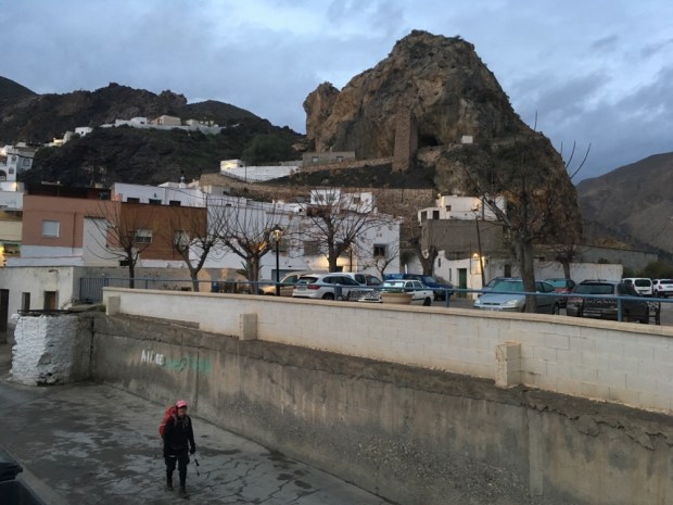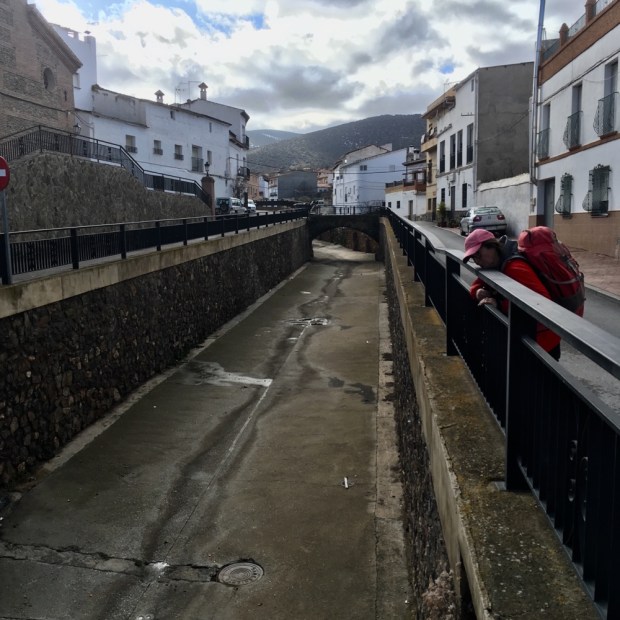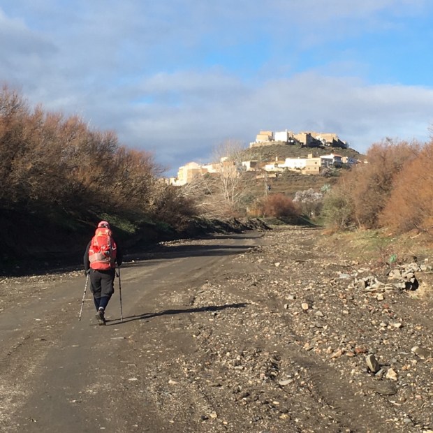 Crossing a river bed on the outskirts of Monda we climbed an ancient cobbled track before arriving into town to find our bed by the loofah plants.