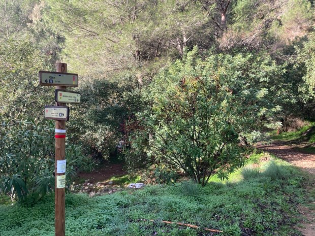 The final leg of the triangle back to Ojen was a 16 km combination of GR243 and GR249, my old trekking companion the Gran Senda de Malaga. Starting off on the trail we had arrived into town on, we soon diverted under the road and into a forested area, eventually turning off onto a steep overgrown track that climbed up and over the mountains separating the two towns.