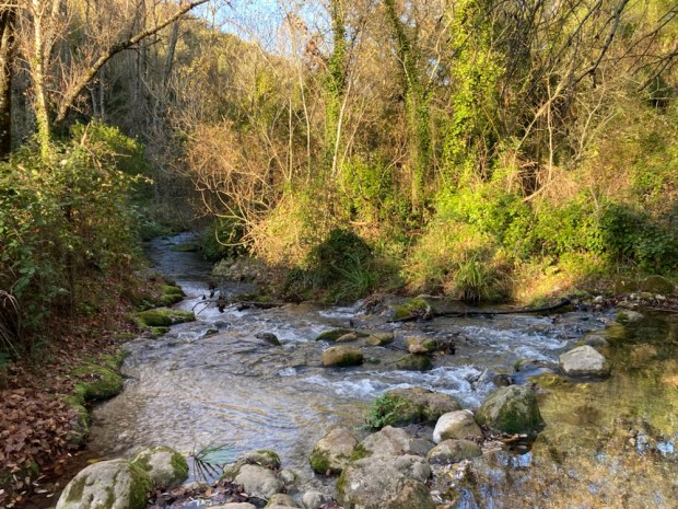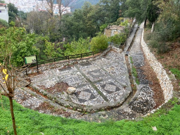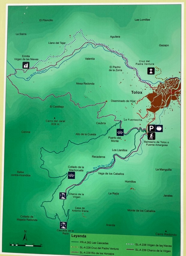 It wasn’t long before we came to a recreation area at the hermitage of the Virgin of the Snows where natural springs emerged from the ground to join the river that we followed into Tolox on a verdant path between rampant crops.