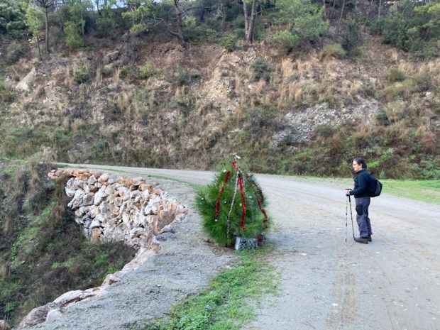 A tiny tree had been dressed for Christmas on the track that took us eventually up to the pass and a helipad- maybe for forest fires or mountain rescue. The landscape seemed to hold more moisture with lush grasses accompanying the palms.