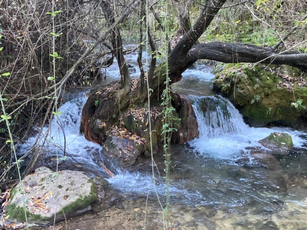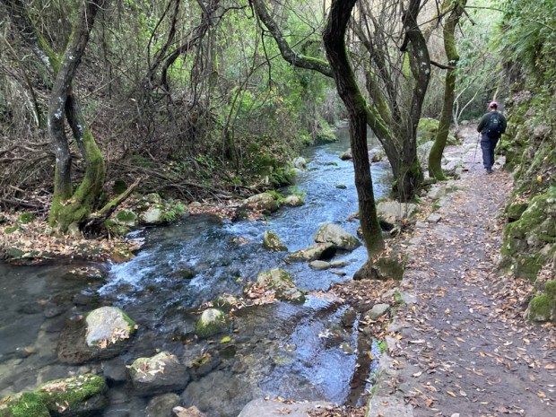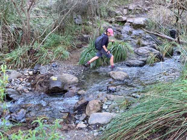 Beautiful, and if it had been a bit hotter I might have managed a cold power shower. Instead we descended to the valley floor and tried to stay dry footed while crossing backward and forward over the river before climbing again to our starting point.