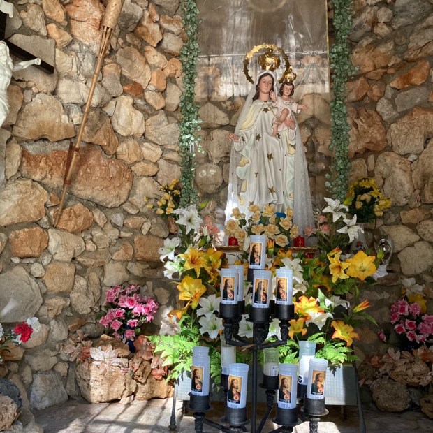 We reached the cave after about 6 km and carried on up to a picnic spot with a view before returning to explore it on our way back down to the finca. Deep enough to provide plenty of shelter for goatherds and their flocks the walls bore the smoke stains of countless fires.