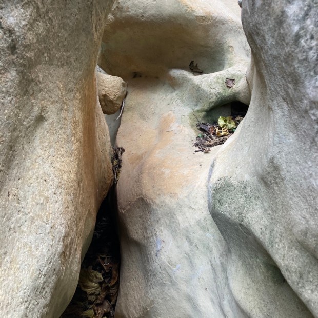 Somewhat alarmed at the signs warning of “fording rivers, landslides and falling into voids” we carried on around the deep creases and folds to a series of cascades where the more adventurous enjoy canyoning and we were satisfied with sitting and picnicking.