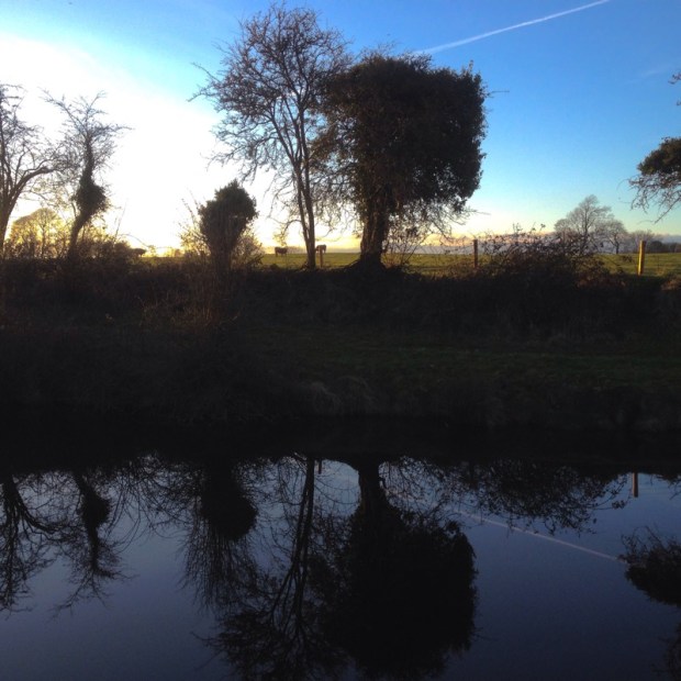 The canal was raised a fair bit above the wet land to our west side that farmers accessed by lowering metal bridges and sheep grazed amongst the thick clumps of rushes.