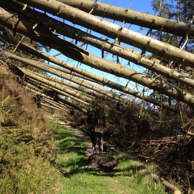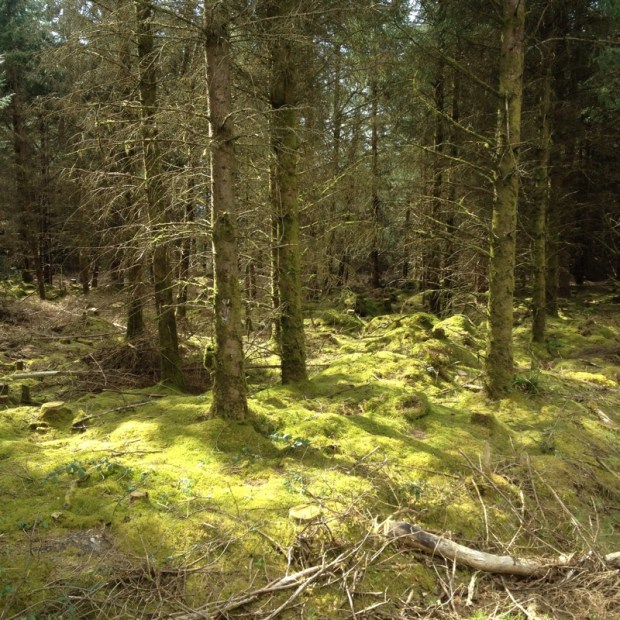 Walking back through the woodland we noticed the invasive rhododendron had been effectively dealt with by cutting slots and presumably poisoning. The Atlantic Rainforest climate made for a mossy green environment in one of Irelands wettest places.